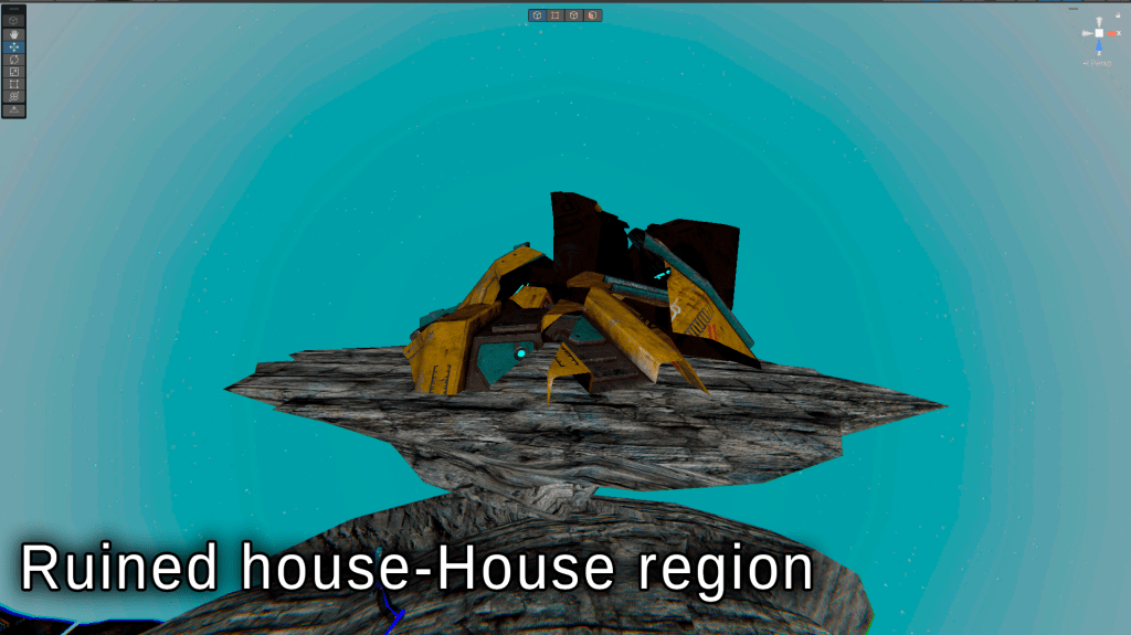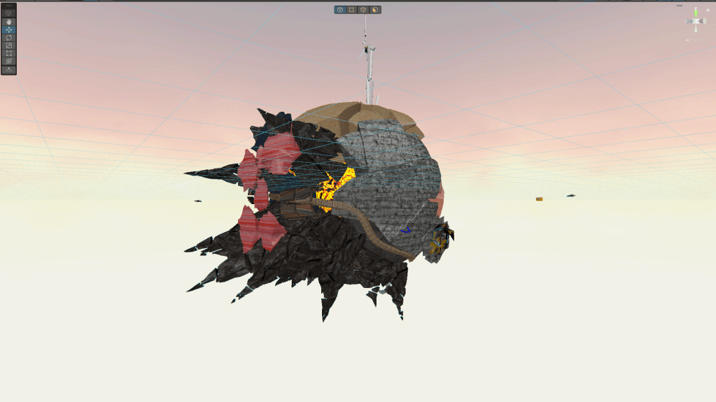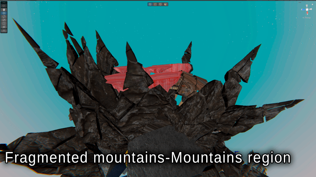 - The visual identity of each region must be distinctive so the player can learn to navigate the world. In Prey (2006), for example, there’s a miniature planet early on with no reference points, which produces total disorientation (an intentional design choice). With that in mind, each region in my game features unique colors and distinguishing elements.