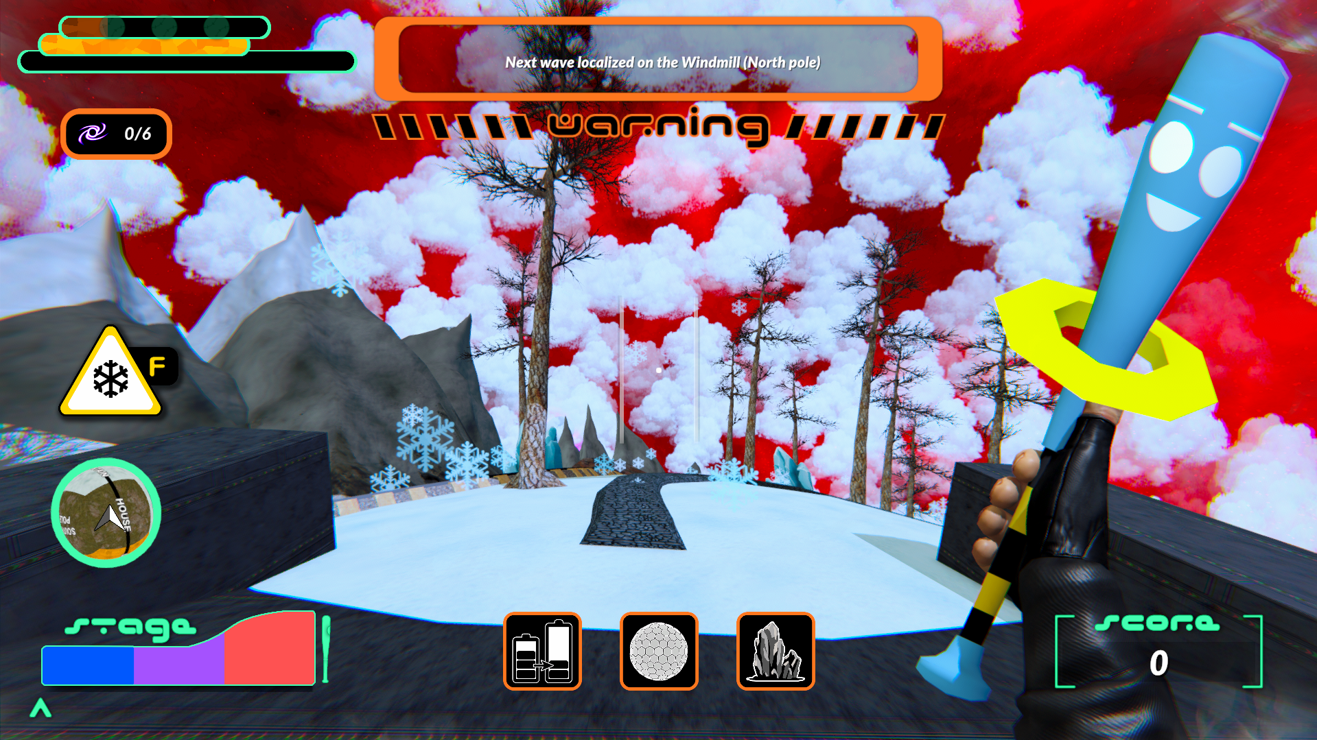 Finally, the technological meteor has the ability to freeze the player in time if the bat used to hit it is not the same size. To convey this effect, I use a sound design that mimics the sensation of poor sound insulation, creating a muffled and disorienting atmosphere.