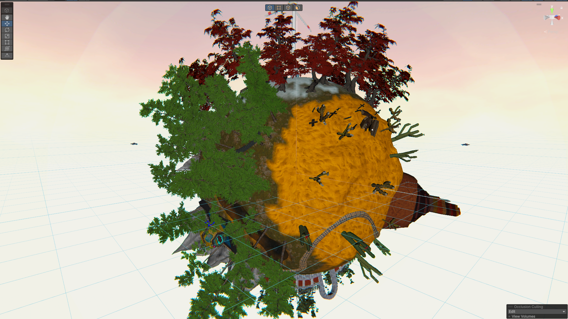 Since complex terrain needs a detailed mesh and I wasn’t using Unity’s terrain system, I looked for early optimizations. Instead of a sphere, I used a subdivided cube, which let me split the planet into six separate terrains. This improved occlusion culling and matched the level’s regions, making my workflow easier.