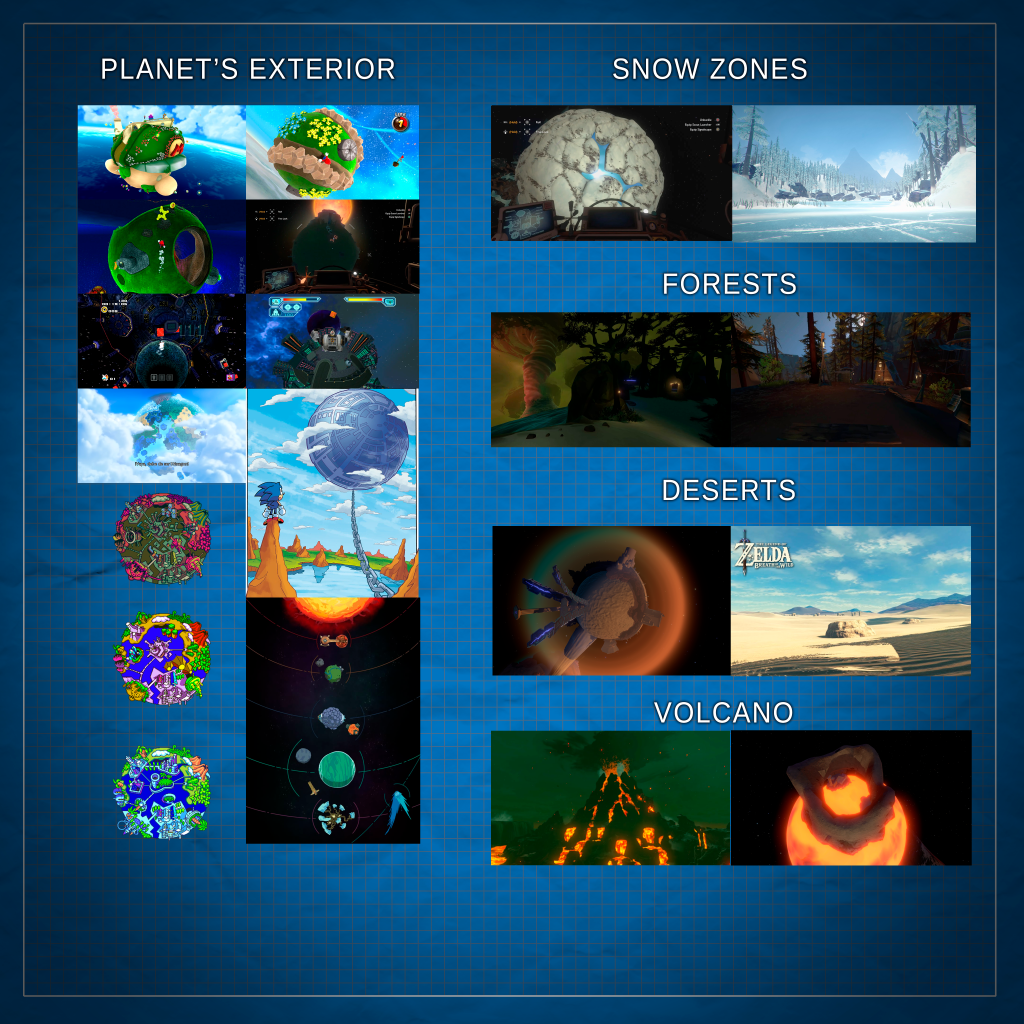 For the creation of the main level, I studied how navigation works in micro-planet levels. The main references were: Outer Wilds, Sonic Adventure 2, Ratchet & Clank 2, Mario Galaxy, and Prey (2006). From these games, I learned several approaches to guiding the player: